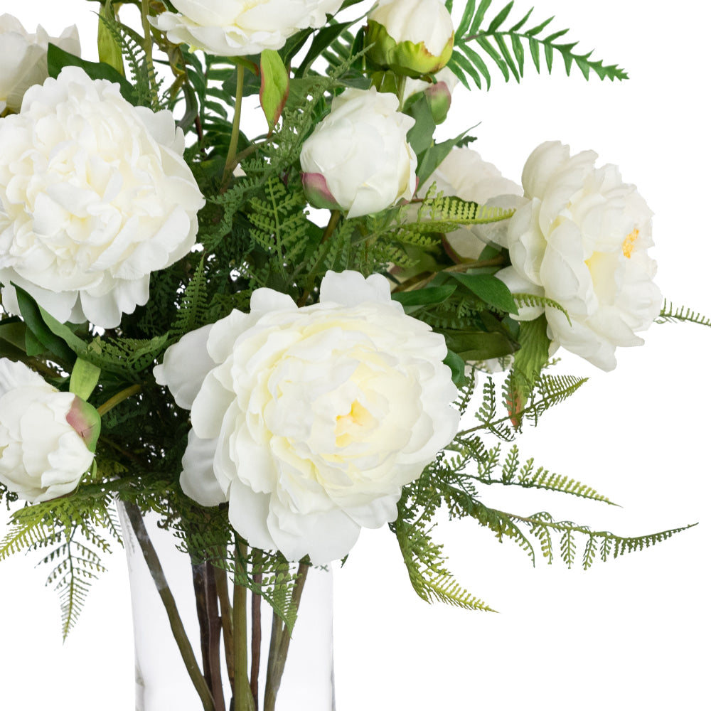 Stylishly design your home or office with this beautiful arrangement on any type of table. Its glass vase allows for viewing the details on the flowers stem. Stylish and realistic details wiith beautiful colours that bring a bright vibe to any area.